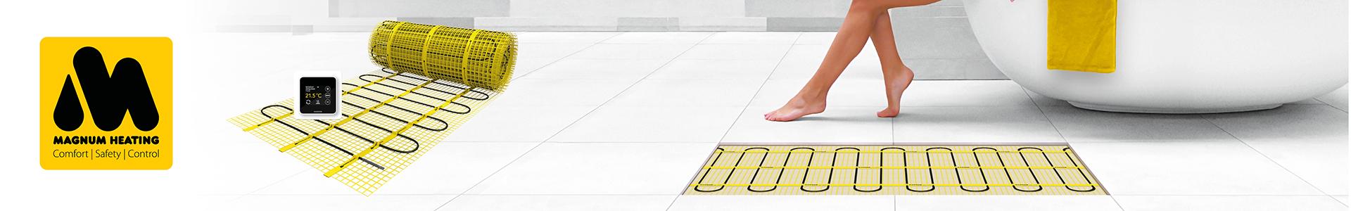 De MAGNUM Mat is een elektrische mat die speciaal is ontworpen om over een bestaande tegelvloer of reeds afgewerkte afwerkvloer heen te plaatsen. De slechts 4 millimeter dunne mat kan in een lijmlaag worden verwerkt en komt direct onder het vloeroppervlak te liggen, waardoor de vloer bijzonder snel opwarmt. Met maatvoeringen van 0,75 tot en met 25 vierkante meter is dit een zeer geschikte oplossing voor badkamers, toiletruimtes en andere ruimtes in huis.