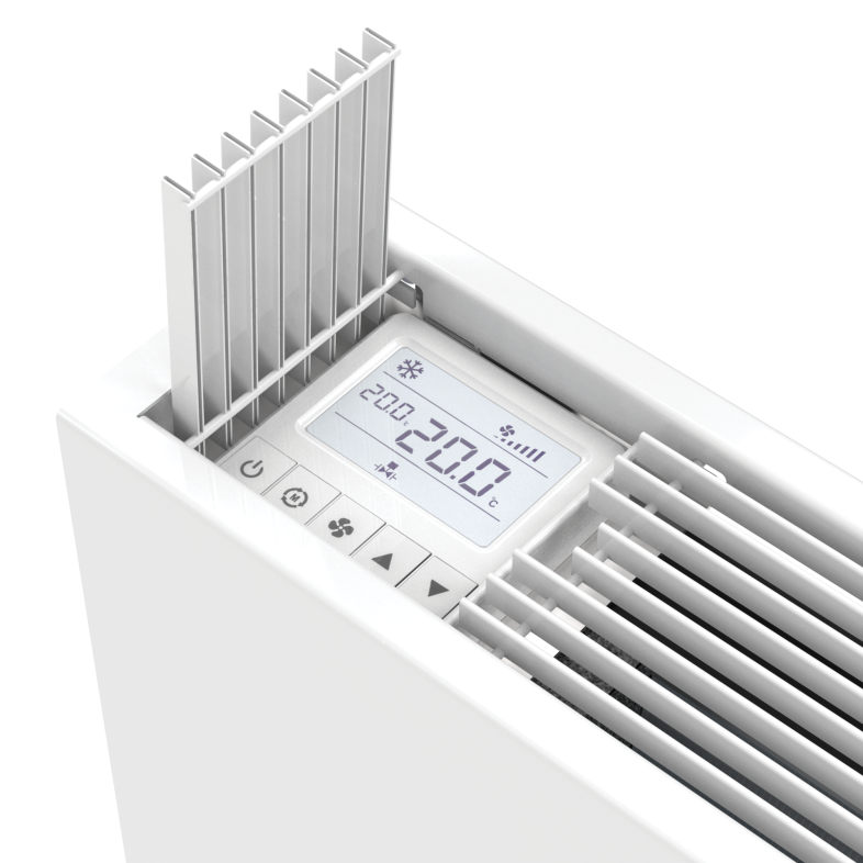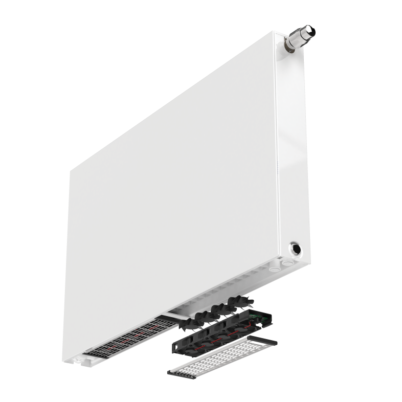 De krachtige tangentiële ventilator zorgt voor een efficiënte luchtcirculatie en een homogeen binnenklimaat.