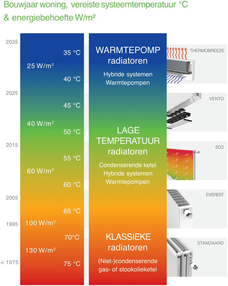 De combinatie van een goed geïsoleerde woning, een (hybride) warmtepomp en het juiste afgiftesysteem is vandaag dé sleutel tot energiezuinig en toekomstgericht verwarmen. Met Henrad ThermoBreeze , VENTO en ECO en kiest u steeds voor maximale efficiëntie, optimaal comfort en een oplossing die perfect aansluit bij de energietransitie.
